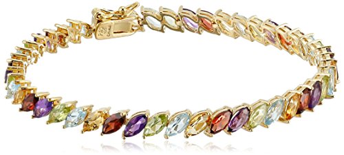-. Feature : Gold-plated sterling silver tennis bracelet featuring multicolor marquis-cut gemstones / 7.25" length and box-with-tongue closure / Imported
