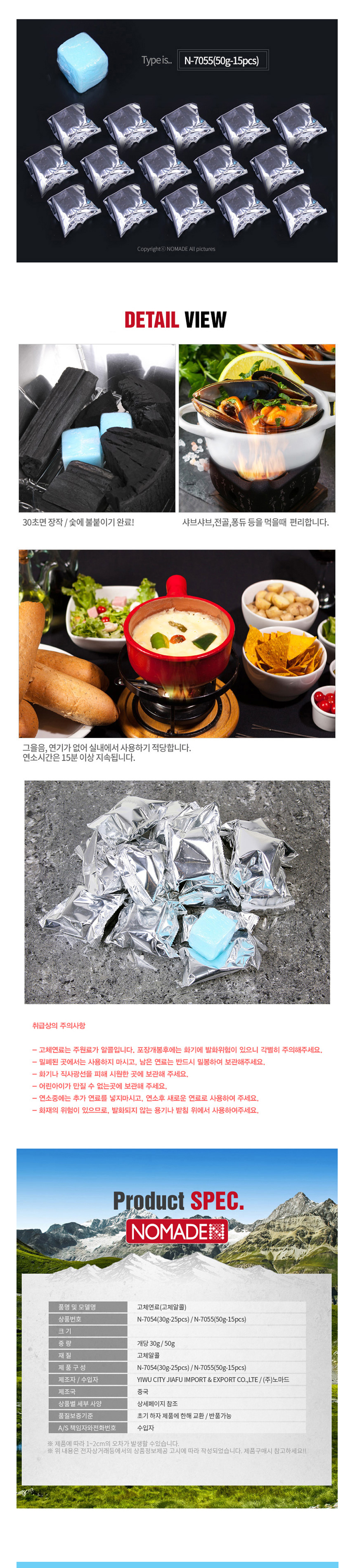 • 품명 고체연료 고체알콜 50g 15P세트 N-7055