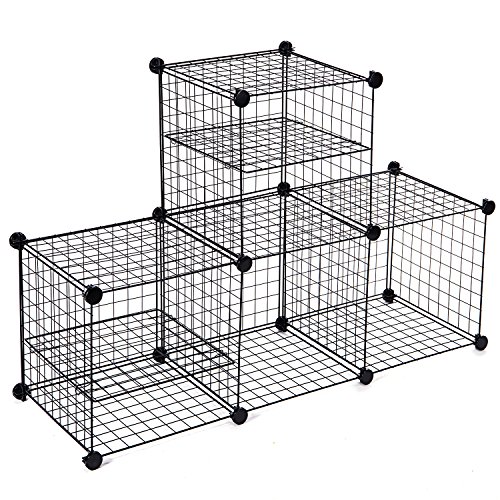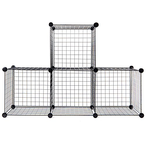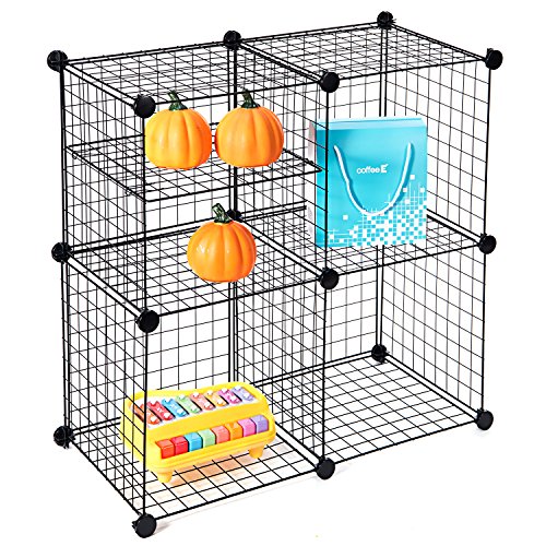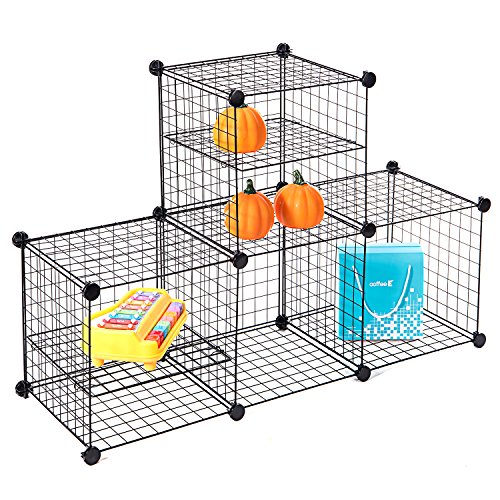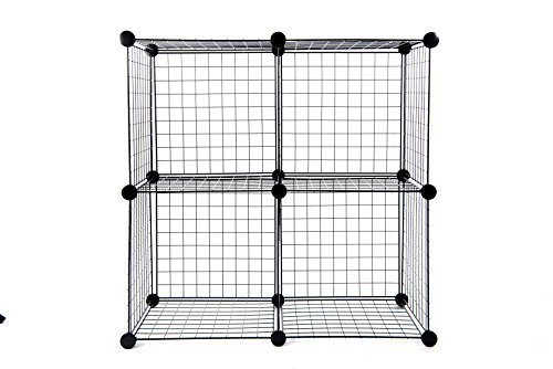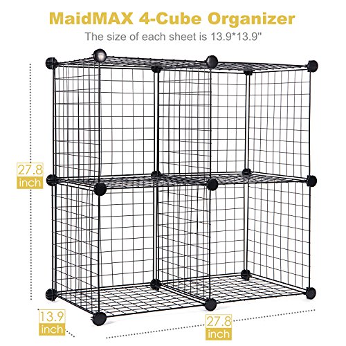 MaidMAX Wire Storage Cubes, Free Standing Modular Shelving Units Closet Organization Systems, 4 Grids with 2 Wire Dividers, Black