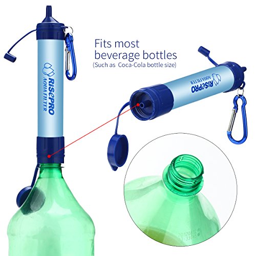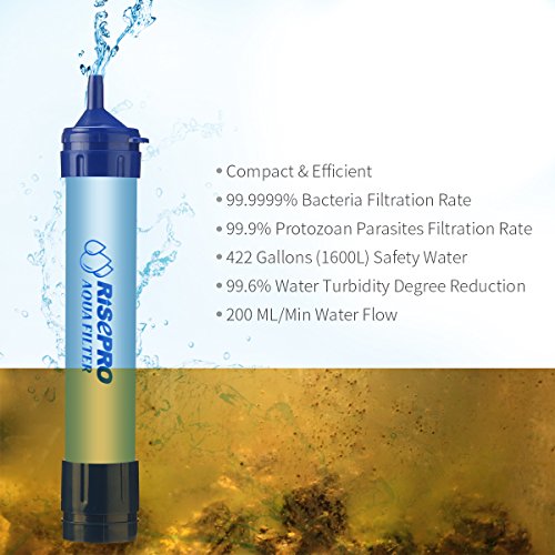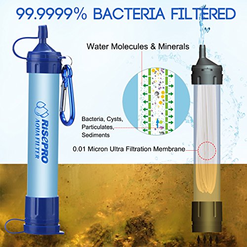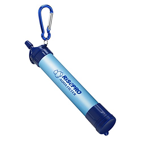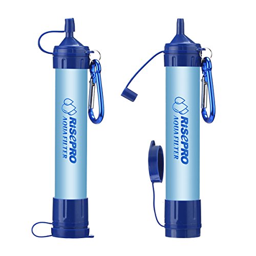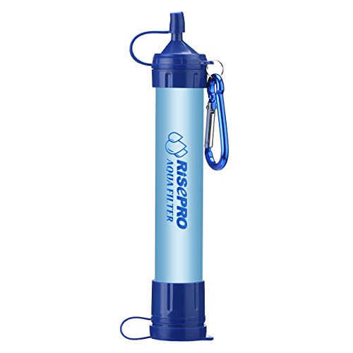 Emergency Water Filter, RISEPRO Portable Aqua Personal Filter Emergency Drinking Water filtration straw for Camping Hiking Backpacking Prepping removes 99.9% bacteria Filter to 0.01 Microns HW-01