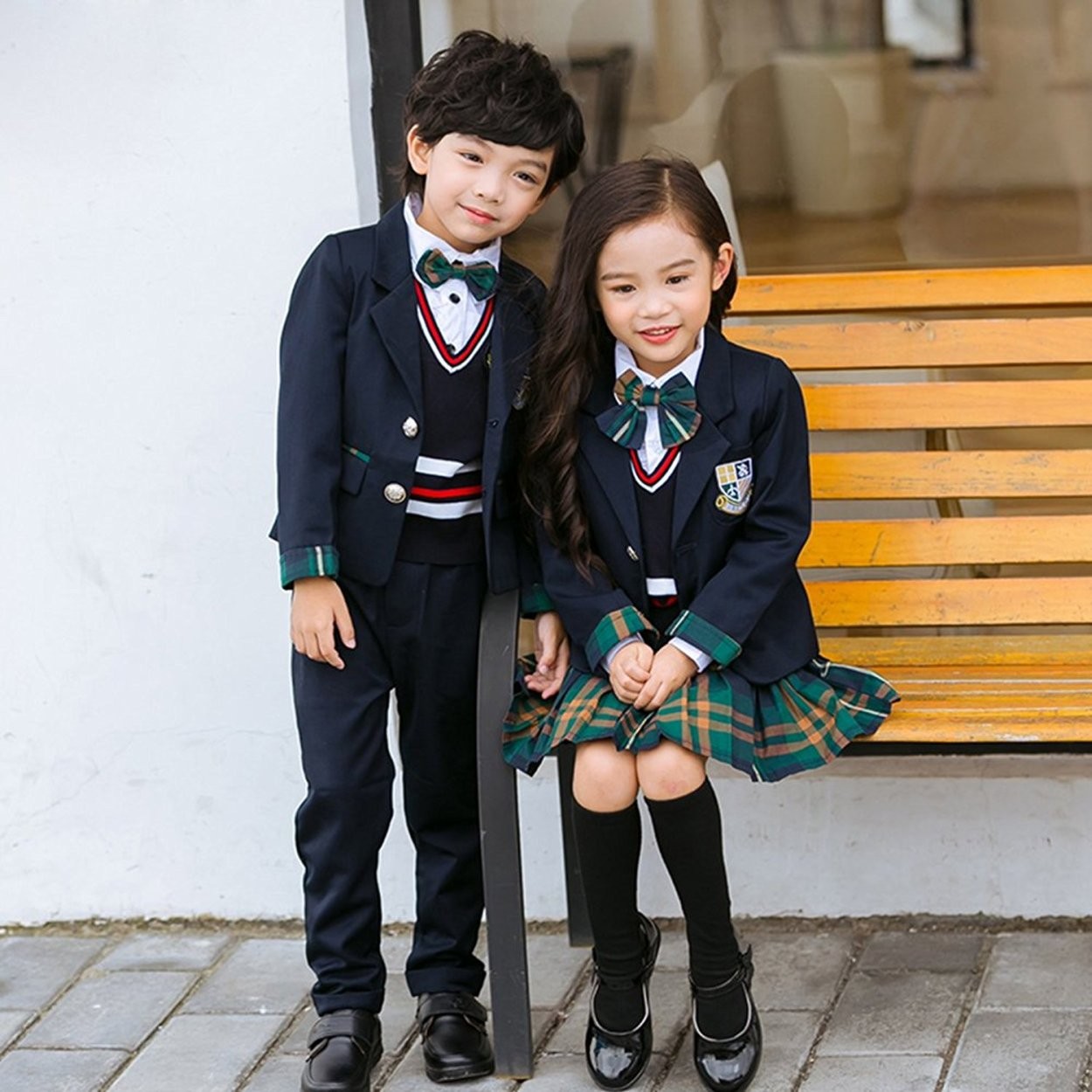 女の子:ジャケット、スカート、シャツ、リボン、バッジ