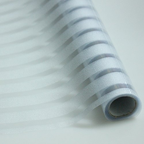 Becry Vinyl Self Adhesive Striped Privacy Window Film Plastic Static Cling White Frosted Window Film No Glue Light Blocking Window Covering Film,17.7-by-78.7 Inches