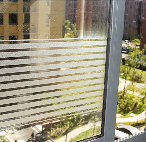Adhesive window film:White frosted stripe glass film;Get the frosted of the window, while providing privacy protection.But a little clear,not suitable for bathroom or toilet.