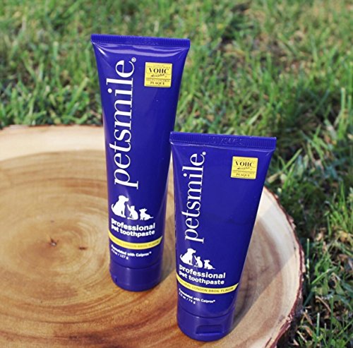 Petsmile Professional Pet Toothpaste is the gentle, safe way to clean your dogs teeth, eliminating plaque and tartar for thorough oral care. Petsmile is the only dental care toothpaste for pets recommended by the Veterinary Oral Health Council (VOHC). They found that with regular use of Petsmile, dogs had significantly less plaque, better oral health and fresher breath. That's because Petsmile's exclusive Calprox formula is clinically proven to inhibit plaque formation for healthier teeth and gums. Petsmile allows you to customize your pet's daily oral care routine. For a deep cleaning, use a toothbrush. For easy maintenance between brushings, apply with our Petsmile applicator swab. Petsmile may also be spread on your pets favorite snack or chew toy for a simple touch-up. Best of all, your pet will love our natural beef flavor. Unlike other toothpastes, Petsmile works on contact to dissolve the protein pellicle on your pets teeth. That's where stains, plaque and bacteria form. Regular use reduces plaque for a healthier, cleaner mouth and no more doggie breath.Feature