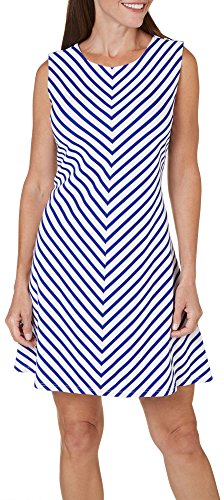 Tiana B Women's Sleeveless Mitered Stripe Textured Trapeze Dress with Back Exposed Zipper