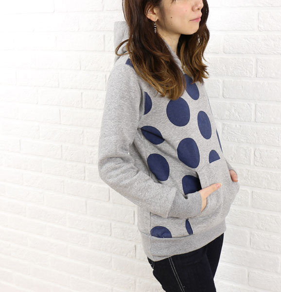u.m.i KOHOLA(ユーエムアイ コホラ) コットン 裏起毛 ビッグドット スウェット パーカープルオーバー・Y-0456B