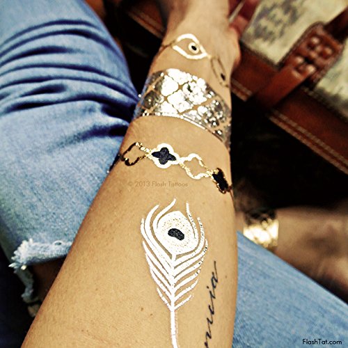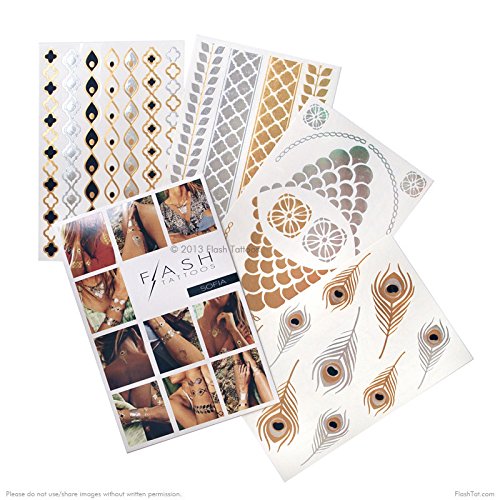 Flash Tattoos Sofia Authentic Metallic Temporary Jewelry Tattoos 4 Sheet Pack (Black/gold/silver) Includes over 32 assorted premium bohemian...