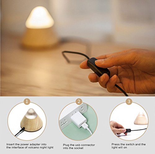 Jhua Creative Volcano Sharp Design Smart Night Light USB LED Wooden Night Light Energy Saving Table Lamp Children Desk Bed Beside Lamp with Switch for...