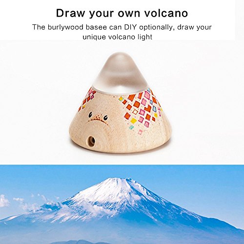 - Wooden volcano small led night light, with gentle light,makes a cute scene with the volcano light. Size: 3.54 in diameter, 3.15 in hight.