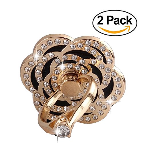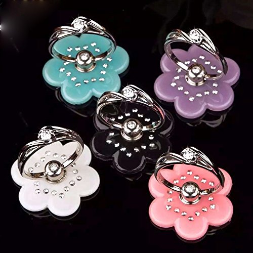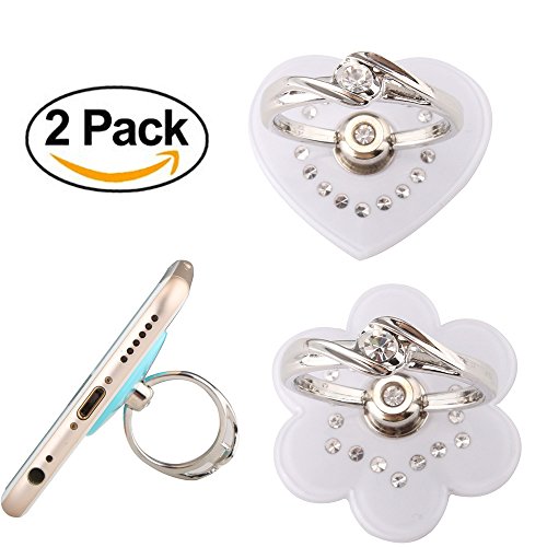 Boytond Rose Crystal Diamonds 540 Degree Foldable Rose Heart Shaped Ring Finger Stand Holder Anti-theft Clasp Mobile Phone Holder for Smart Phone (White Jade)
