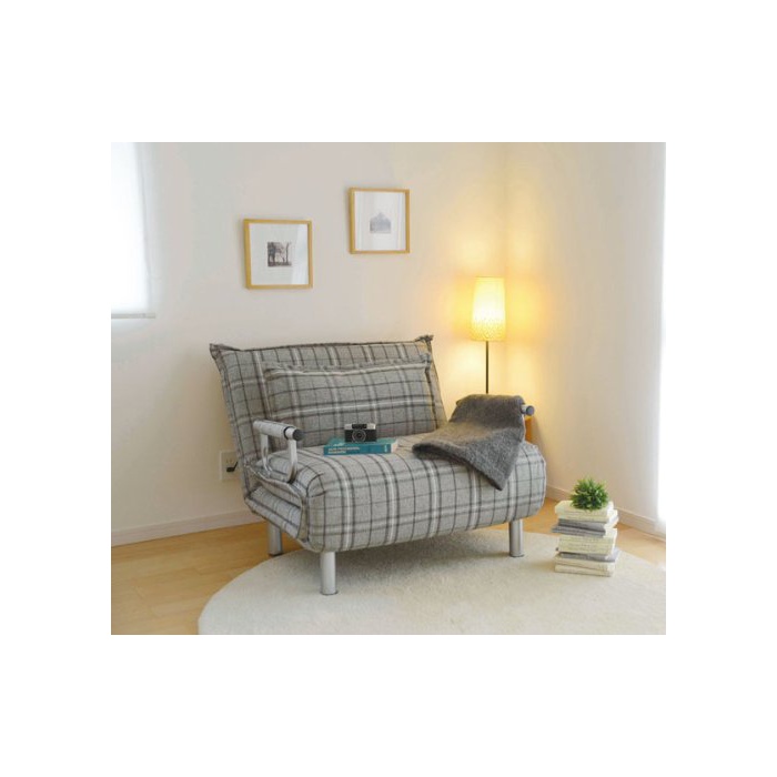 《다마리빈구》 리클라이닝 소파 베드 「B《다》 체크」 (그레이)