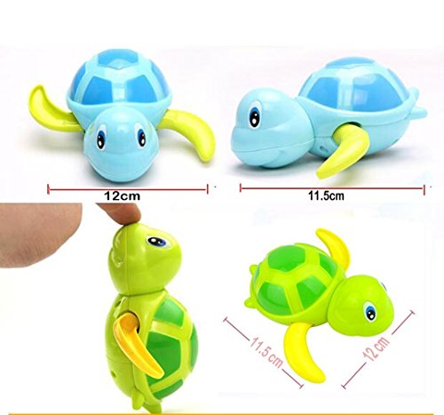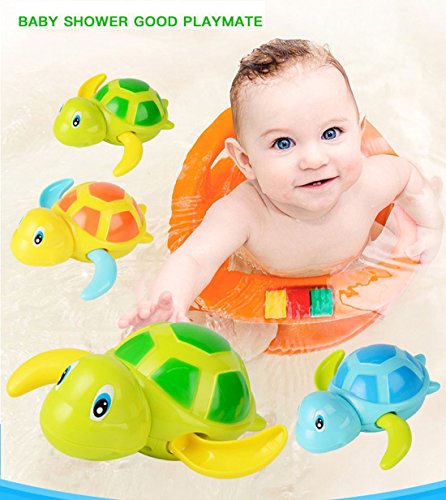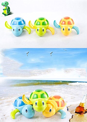 3 small swim turtle wound-up chain bath toys and it lets your child full of happiness when he have a bath.Turn the spring at the bottom of the turtle clockwise for a circle and a half, and the turtle's two legs will move counterclockwise. (Be careful, please do not overtighten to prevent chain damage)