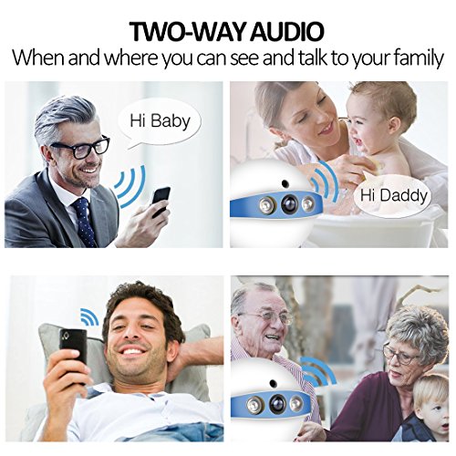 TWO WAY AUDIO: This IP camera built in microphone and speakers so you can talk and listen to your family or friend via home wireless cameras. Supporting video recording up to micro SD card 64GB (Kindly notice here:This packaging is not included the micro SD card). This baby monitor also have Intelligent Motion Alerts feature, you can receive Message Alerts/Snapshots from Mobile App to ensure well being.