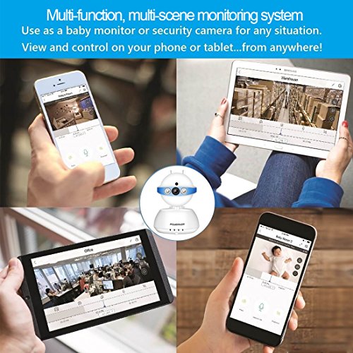 NIGHT VISION: Remotely talk and listen via mobile App even in the dark with the IR LED night vision up to 20 feet. This home surveillance gives you good protection in pitch dark, you can see the whole room via night vision - not just a limited spotlight view at anytime of day or night. It also can be used for shops, meeting room, pets,nanny, elder monitor.