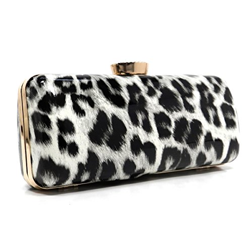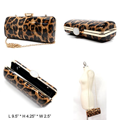 -. Title : Elphis Animal P.R.Int Leopard Python Snake Skin Glossy Hard Case Clutch Evening Bag