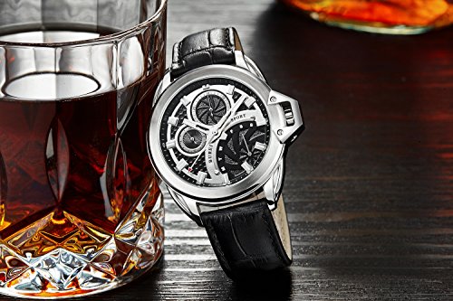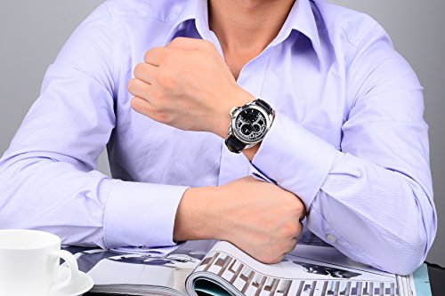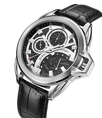 -. Title : BUREI® Men's Stainless Steel Dress Watch with Black Leather Band