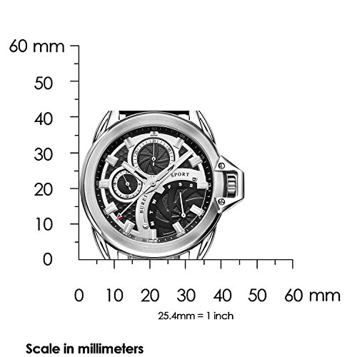 -. Feature : Contemporary Swiss-inspired men's watch design, with ultra-precise Japanese quartz movement and sleek, dramatic style. / QUALITY - Genuine calfskin strap w/ crocodile-pattern embossing; mineral lens, stainless steel scratch-resistant case, water-resistant to 50m (165ft). / GUARANTEE - 30 day money back guarantee and full manufacturer warranty for up to 2 years, customer satisfaction is guaranteed. / ABOUT BUREI - We design watches and sell them direct from our factory to you, without the heavy P.R.Ice tag, beating competitor's P.R.Ices daily. / Case Diameter: 42.2 mm, Weight: 74.7g, Band Length: 197 mm, Band Width: 18 mm; Package includes Watch Box, Gift Bag, User Manual, and 2-year Warranty Card; additional colors and styles available from BUREI.