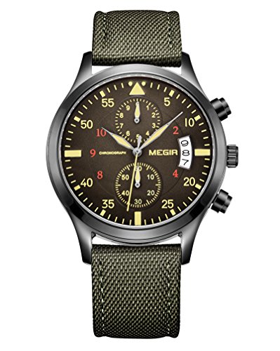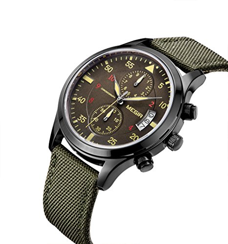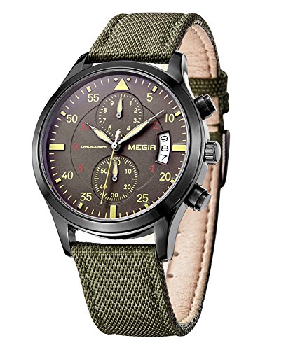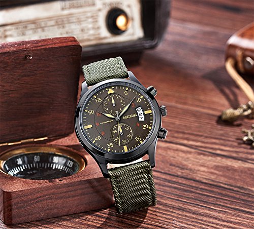 -. Title : GOHUOS Mens Sport Military Canvas Band Chronograph Auto Calendar Waterproof Quartz Wrist Watches-Army Green