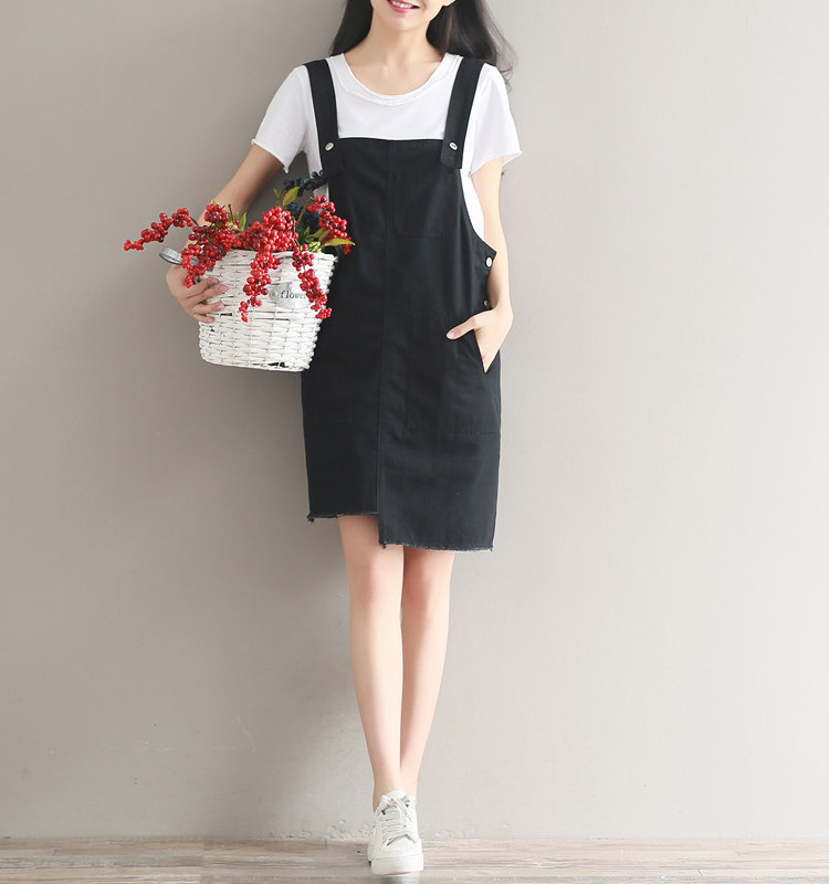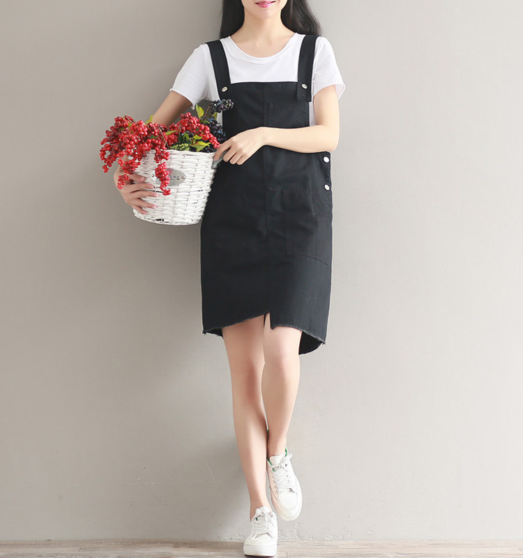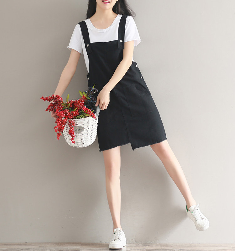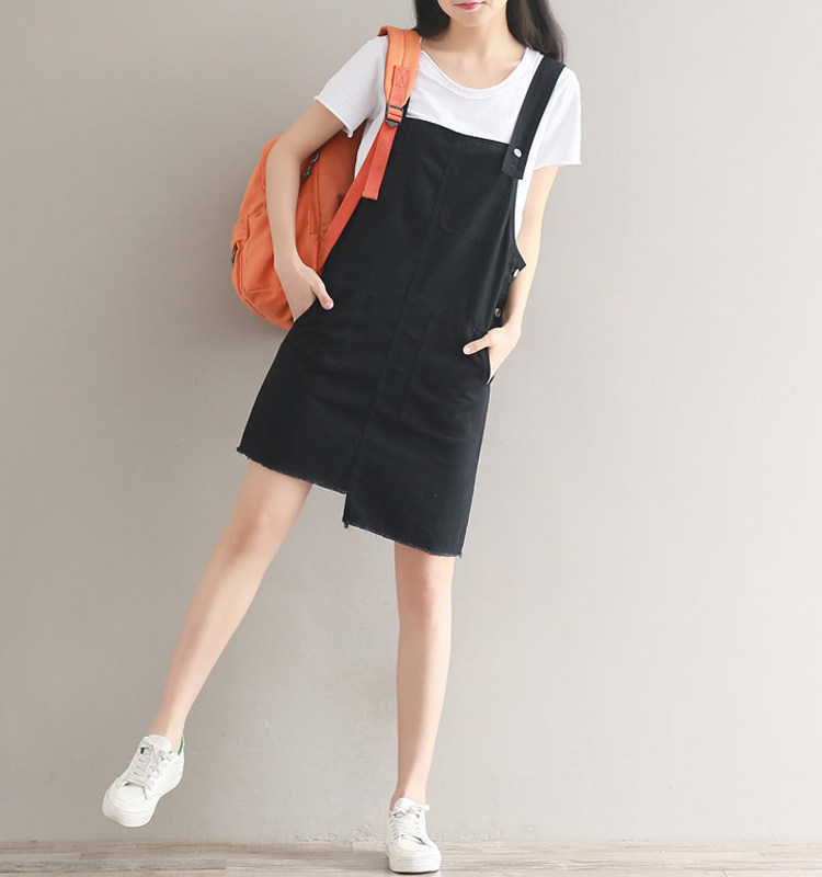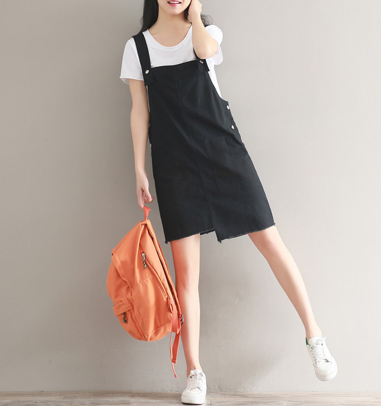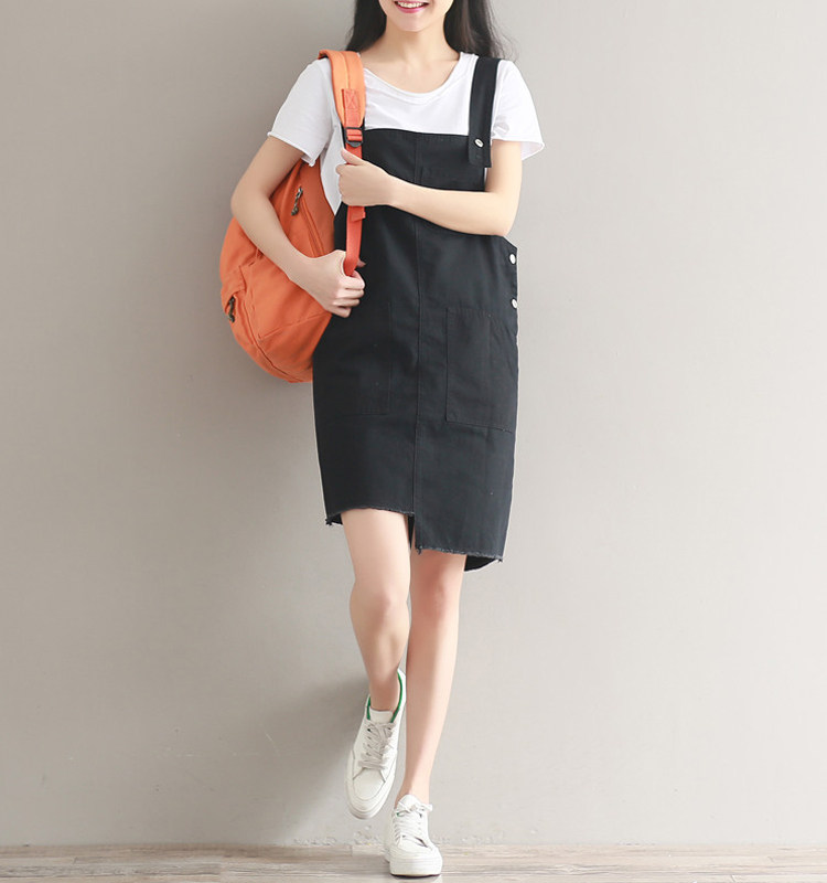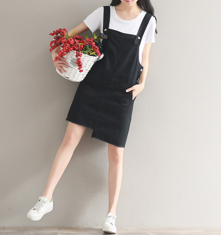 夏新款韩版显瘦百搭双排扣下摆不规则纯色牛仔背带裙女连衣裙