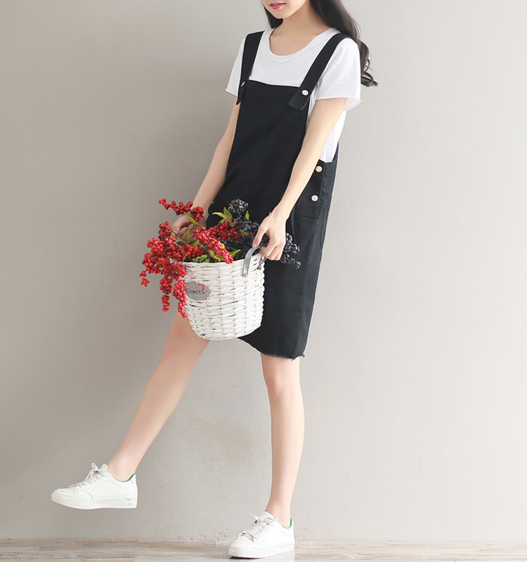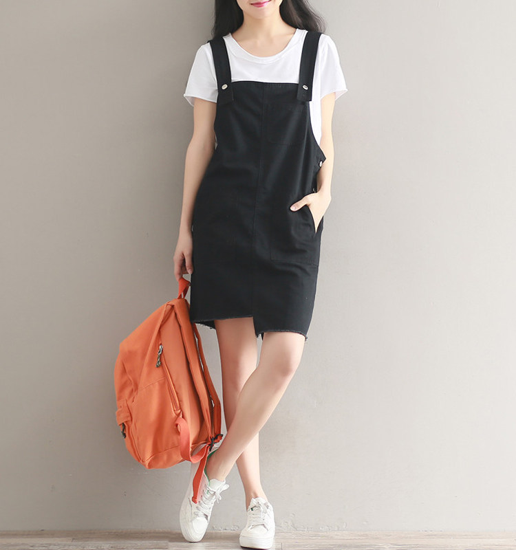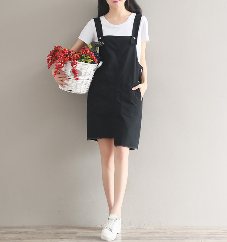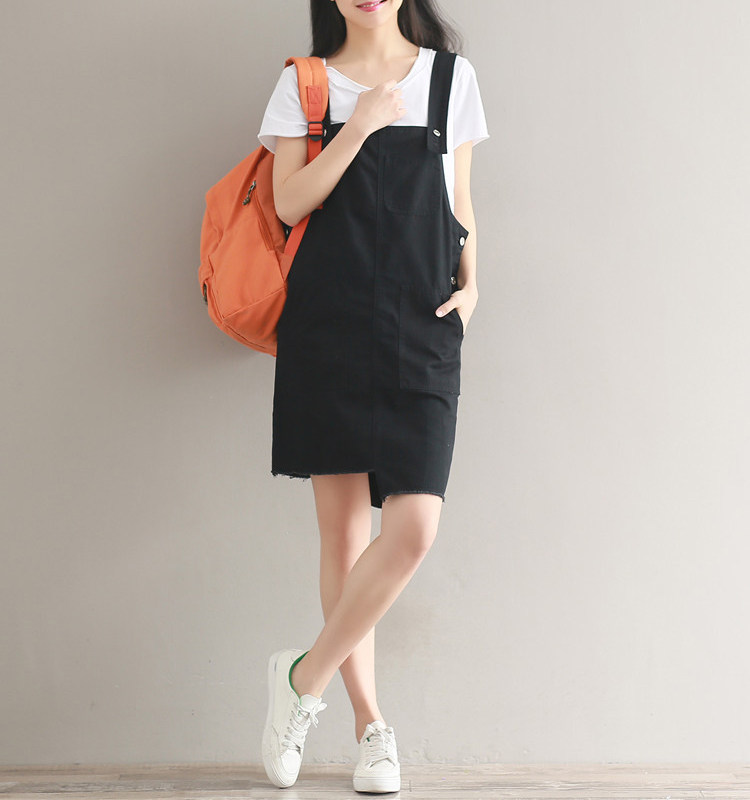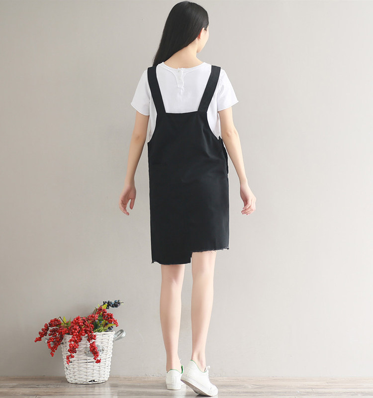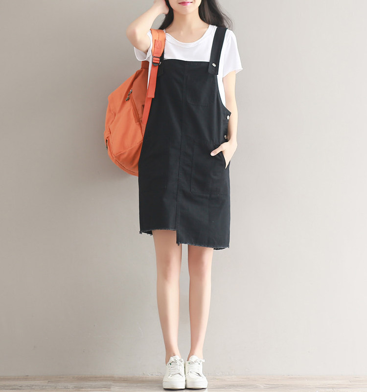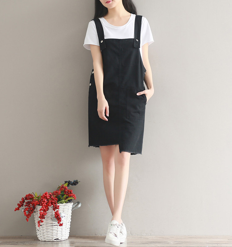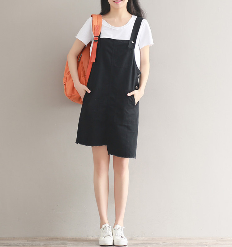 夏新款韩版显瘦百搭双排扣下摆不规则纯色牛仔背带裙女连衣裙