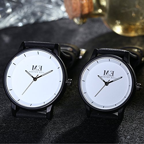 -. Title : Menton Ezil Simple Couples Watches White Dial Leather Band Quartz Analog Wrist Watches for Her and Him - Set of 2