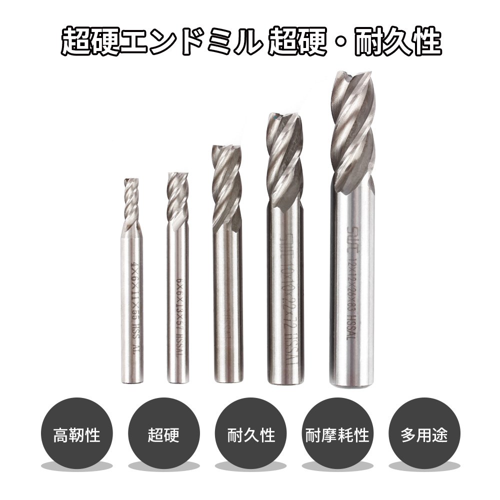 5 pcs 4 mm 6 mm 8 mm 10 mm 12 mm Cutter for processing, various clean cutting surfaces.