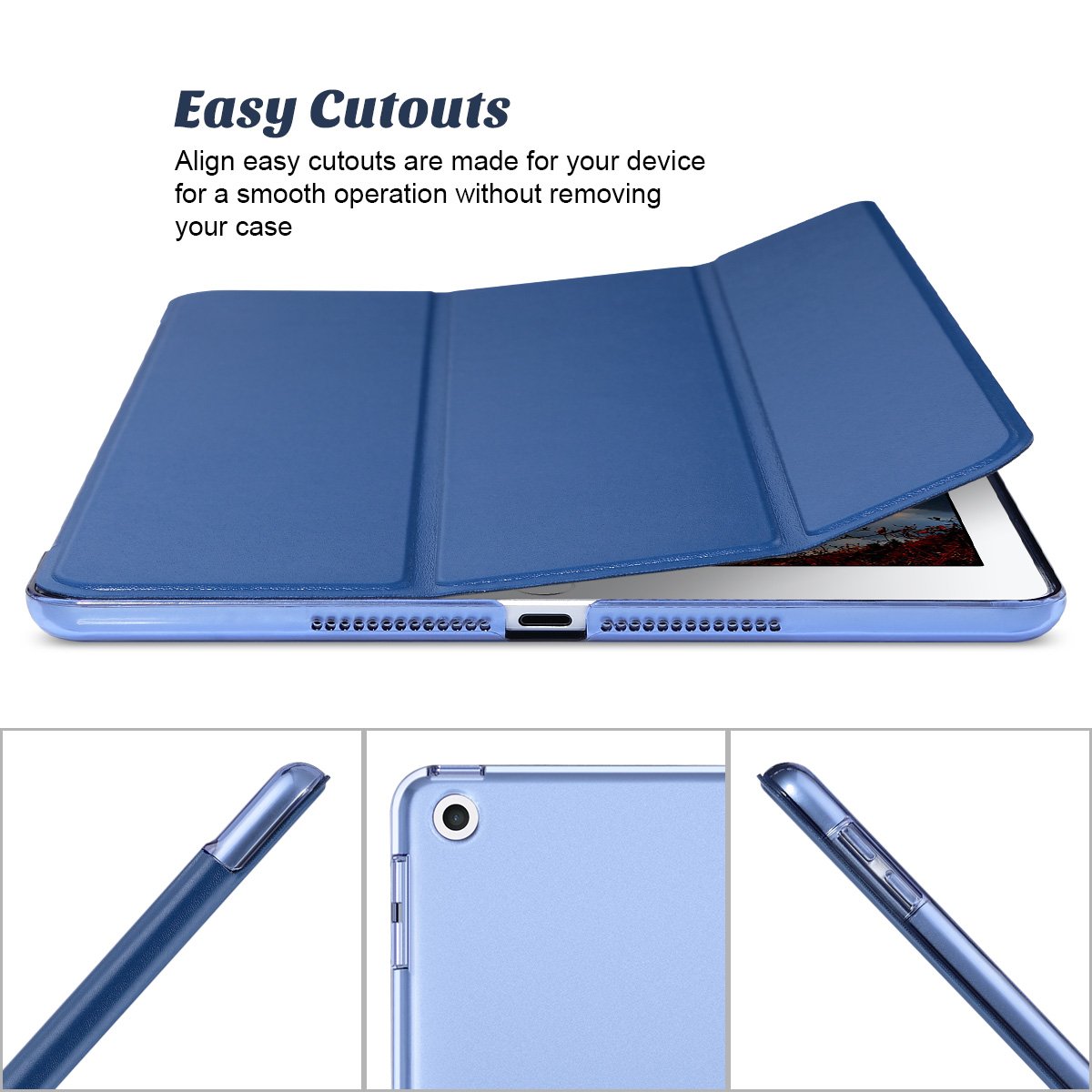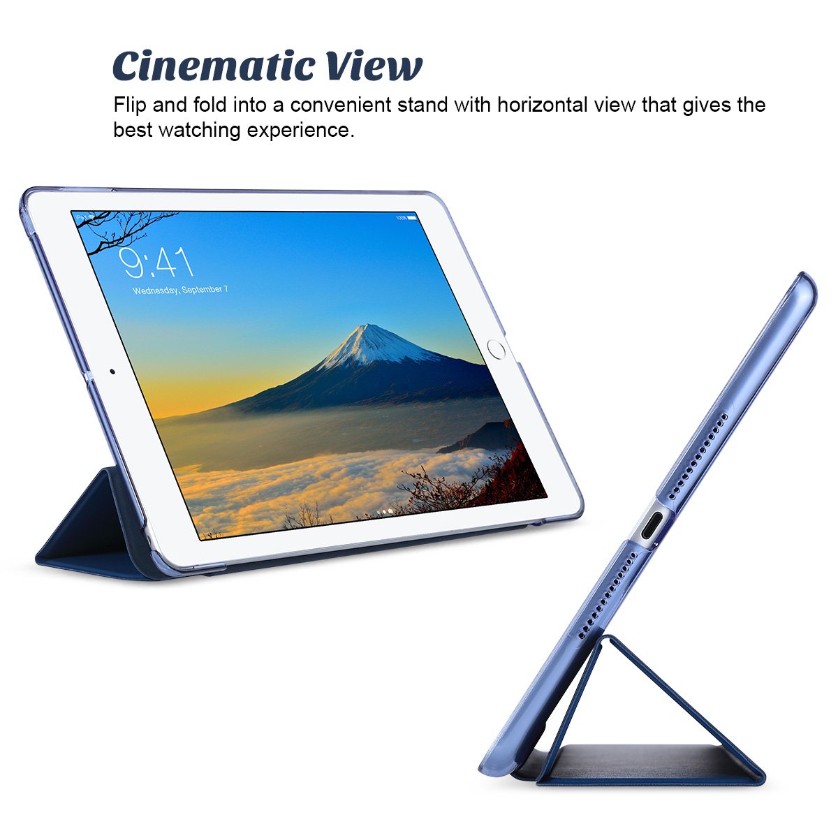 iPad 9.7 Case PU leather clear stand function Auto sleeve New Apple iPad 9.7 inch 2017 latest version exclusive (navy blue)