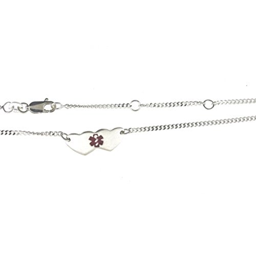 -. Title : Medical Alert Anklet Double Heart Sterling Silver Adjustable