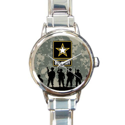 -. Title : Hot Sale Watch US Army Soldiers and Camouflage Background Round Italian Charm stainless steel Watch