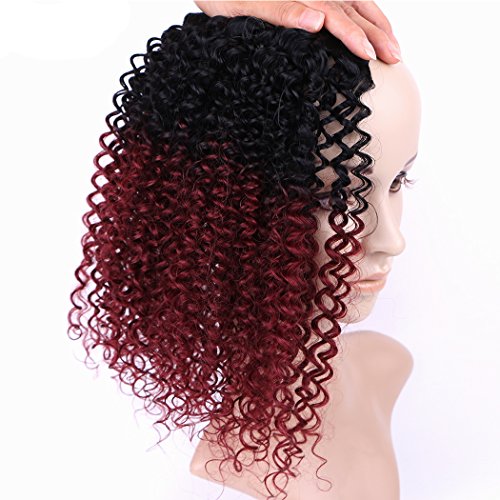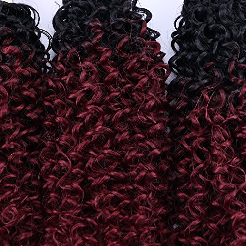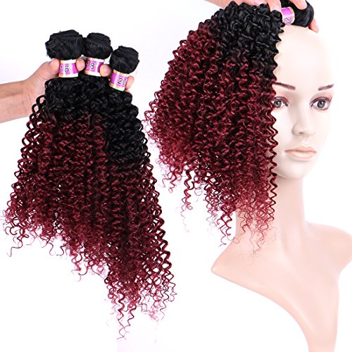 Kinky Curly Synthetic Hair Weave 16 18 20 Inches 3 Bundles Black and Burgundy Ombre Synthetic Hair Extensions
