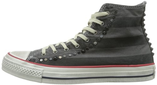 -. Feature : Hi top sneakers / Canvas upper / Rubber toe cap / Studded
