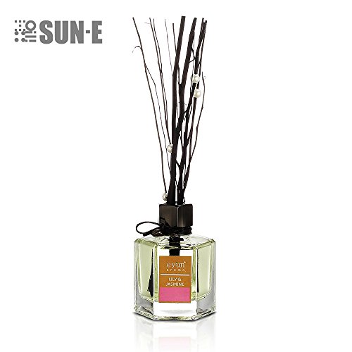 Essential Oil Reed Diffuser Gift Ornaments Set -Reed Sticks and Long Lasting Natural Scented Fragrance Oil (3.52Oz.) Glass Bottle for Aromatherapy and Air Fresheners. (LILY & JASMINE)