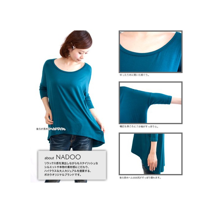 원본상품명: (ナドゥ) nadoo ジャジ 後ろ長めヘム 7分袖 カットソ ヨガウェア フィットネス ダンス 534 (ダクグレ)