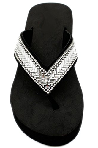 Binding : Apparel Product Description These black bling flip flops are THE BOMB! You're going to love walking around in these all day long. The comfy wedge the flashy triangle bling strap give it a dressier feel than normal flip flop sandals for women or girls.? Wedge approximately 1 inch tall. Built for both comfort and style, you can wear these anywhere, inside or outside, to the beach or to the mall. Dress up those jeans, shorts, skirts or leggings with some rhinestone flip flops on your feet. Womens sizes as shown. Designer look with a comfortable fit on feet and wallet by TravelNut® PLEASE ADD YOUR REVIEW and let our Amazon community know if they run true to size, are large or small.? Your contribution is super helpful much appreciated. 0