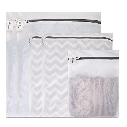 Laundry Bags, Kealive Wash Net (5pcs) - White Wash Bag with Zipper (Large 2, Medium 2, Small 1)
