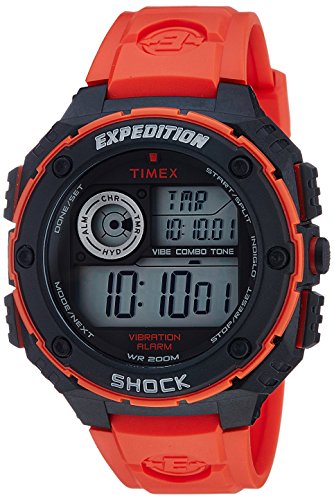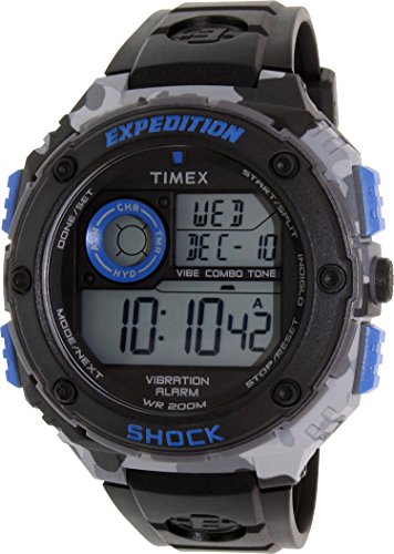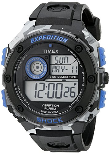 Studio : Timex Corporation Publisher : Timex Corporation Binding : Watch Product Description The Timex Expedition Vibrating shock watch features a vibrating alarm and the extra durability of Timex's shock features. A stopwatch, Calendar, and timer round things out.Enhanced shock resistance.Indiglo Night-Light. 0
