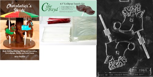 Cybrtrayd Large Reindeer Lolly Chocolate Mold with Chocolatier's Bundle of 25 Lollipop Sticks, 25 Cello Bags, 25 Red Twist Ties and Chocolatier's Guide