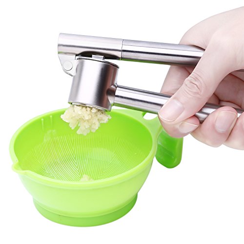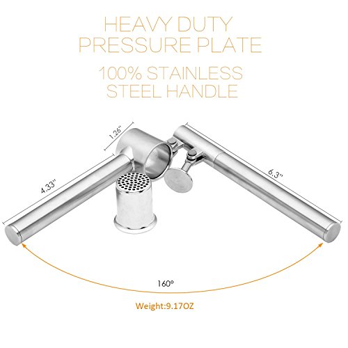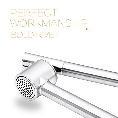 What's difference about our product design. √ The function of hard tool depends on the material rigidity, higher rigidity, better function,and Artsdome galic presses' handles are made of stainless steel totally,which provide the best rigidity and function. √ Flexible press plate is a classical design, When you put down the press plate, it will be almost vertical, so the garlic cloves can get higher pressure on vertical direction.? √ The plate get nearly vertically, which also reduce the fulcrum distance with stress points, and it is more efficient to leverage.? Features: √ The main structure is made of stainless-steel,won't rust, bend, break or weaken at the joints. √ The leverage force point is the Sunk Rivet, which is made of stainless steel, strong and wear-resisting. √ ?Funnel can be removed for easier cleaning and use. Parameters: √ Brand: Artsdome? √ Material: Stainless Steel?? √ Weight:9.17 oz? √ Size: 6.3 x 4.3x 1.26 in √Add delicious, fresh minced or sliced garlic to all you meals in seconds. Once you find?how quickly and easily?you can produce you own fresh garlic mince?you'll be adding to everything. Home made garlic bread, rich pasta sauce, mouthwatering hummus, oven roast veggies, mashed potatoes. The options are only limited by your imagination!? √ We are always committed to providing best product instead of best package .