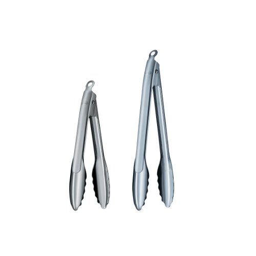 This set combines two of Rosle's finest kitchen tongs, the Rosle 12 inch and 9 inch locking tongs. Both are beautifully designed with one hand operational locking mechanisms which make these tongs a versatile tool for every kitchen. They are perfect and efficient for lifting and turning all kinds of food both in the kitchen and on the grill. To use the one hand operational locking mechanism: 1) When opening the tongs, hold them with the tips facing downward; 2) Light pressure will release the locking mechanism opening the tongs; 3) for locking, hold the tongs so the tips face upward; 4) The tongs will automatically lock into a closed position when light pressure is applied with one hand. Each Rosle tool in this set has been developed in close cooperation with professional chefs and consumers to ensure that all tools are functional, ergonomically, stylish and modern. Rosle products are made to bring users years of enjoyment and we back this promise with a lifetime warranty.