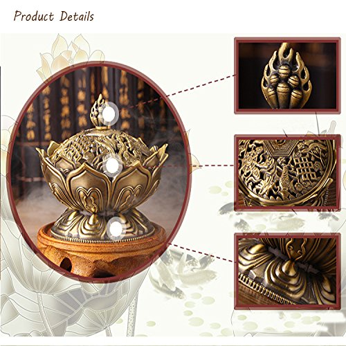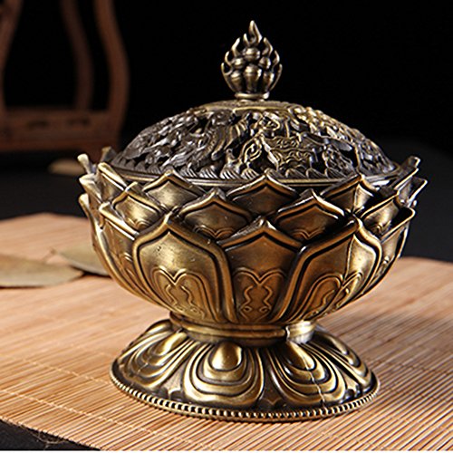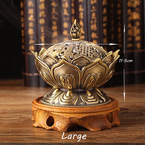 DEBON Green Bronze Alloy Incense Burner Lotus Aroma Furnace Creative Gifts Decorative Crafts Incense Burner Incense Furnace Sandalwood Furnace (Large)