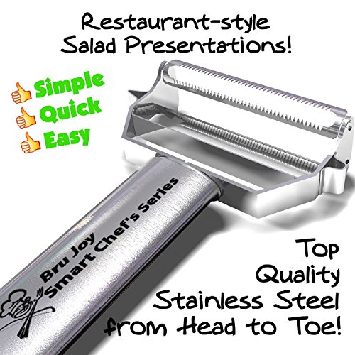 - Brings You Many Compliments: Thanks to its ultra-sharp dual blades & ergonomic handle, Bru Joy Dual Julienne and Vegetable Peeler allows you to create professionally presented julienned salads, vegetable spaghetti or zoodles in seconds. Even the pickiest chef/guest will be amazed at what you can achieve!