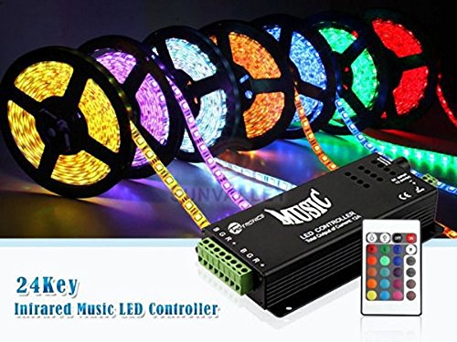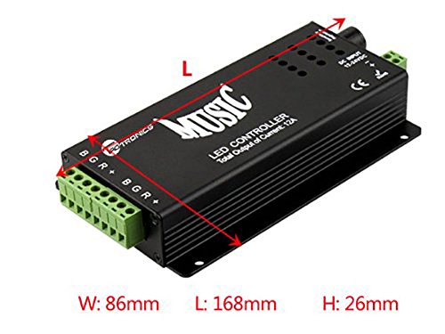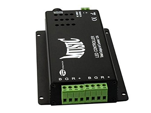 This Sound Sensitive RGB Controller picks up sound well when you have it near a speaker. This LED light controller uses 12V input power and has a 4 contact connection for a RGB strips. You can choose 16 solid colors, flashing, strobe, adjust brightness, adjust flash and strobe speed rate. 2 music mode include 3 function: Single color; Flashing and Beat sound-control function