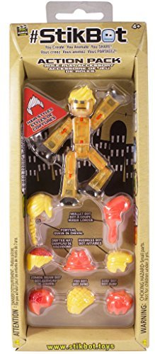 -. Feature : Includes: Gold Stikbot and 9 different hair styles. / The hairstyles may vary from yellow to orange. / Hairstyles included: Mullet Bot, Ponytail, Drifter Hat, Business Bot, 2 Zombie Brain Bot, Fro Bot, and Surf Bot.