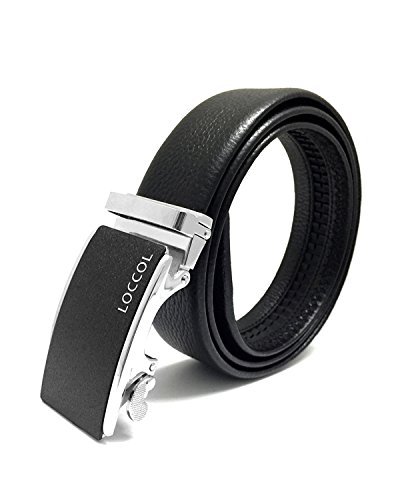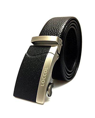 LOCCOL Men's Leather Belt Automatic Alloy Buckle 1.5" Wide Ratchet Dress Black Belts Box PackedPerfect fit1. To loosen belt from buckle- firmly push the belt forward inner way in buckle and closure will lift on its own. (No tools needed!)