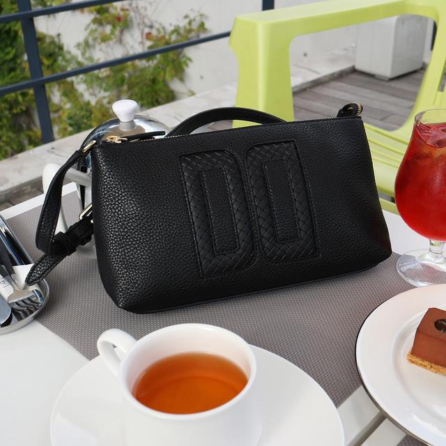 위빙 장식으로 연출한 DD 로고로 포인트를 준 숄더백입니다.
