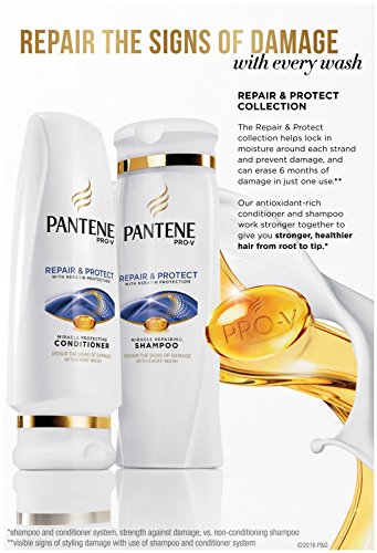 Packaging may vary. Pantene Repair & Protect Conditioner is the seemly miracle conditioner with the power to repair 6 months of visible signs of styling damage in just one use when used with Repair & Protect Shampoo. Results are dramatic. Vibrancy returns. Smoothness makes a big come back. For a healthier finish, use with Repair & Protect Shampoo and use Overnight Miracle Repair Serum (for 8 hours of repair to smoothness while you sleep).; Takes hair from dry and damaged to silky smooth by repairing 6 months of visible signs of styling damage in just one use when used with Repair & Protect Shampoo.; Repair visible signs of styling damage in just one use.; For a healthier finish, use with Repair & Protect Shampoo and use Overnight Miracle Repair Serum (for 8 hours of repair to smoothness while you sleep).Feature
