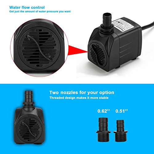 Simple Flow Control: Adjust knob for different water flow rate you want, creat exact water flow effects for pond, aquarium, fountain, fish tank or hydroponics. Max 400GPH.