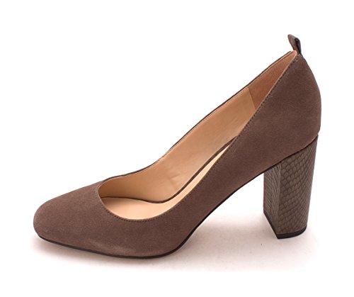 Product DescriptionHigh block heel pump with slightly squared off toe and cushioned insole0
