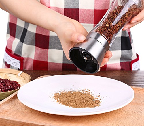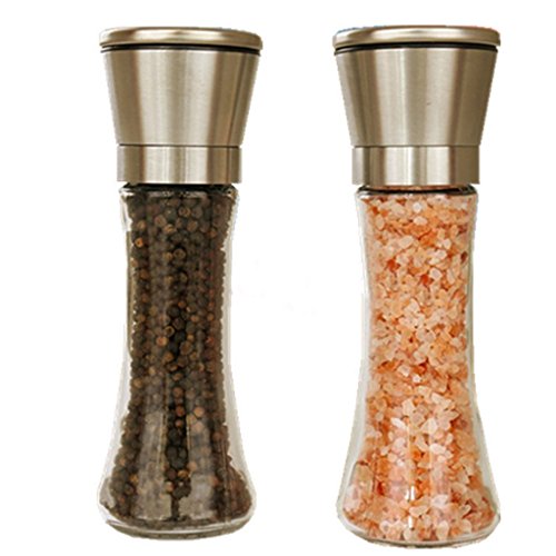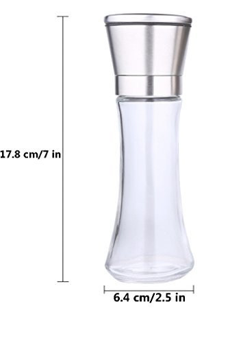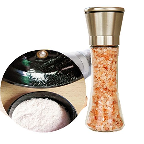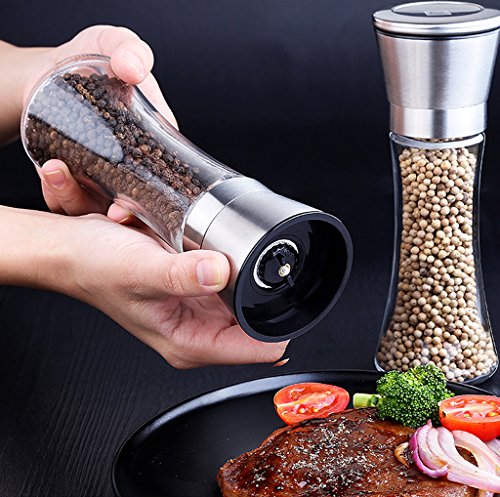 2: Stainless steel and glass salt and pepper grinder set - To adjust the roughness, just turn the black knob on the salt or pepper mill, keep the head and glass body, and then enjoy the fresh ground salt, pepper or other spices.