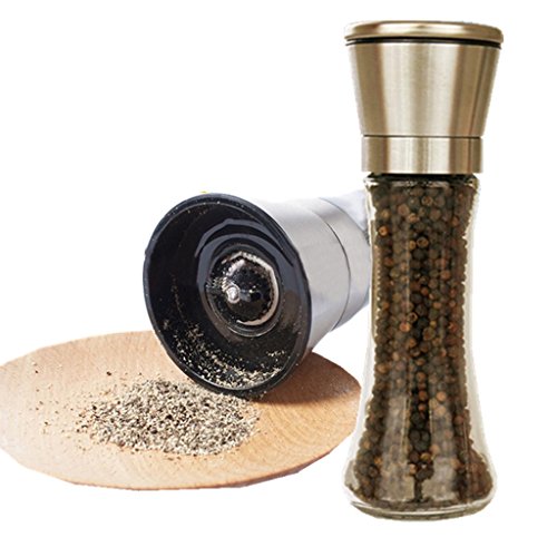 Yiwj Salt and Pepper Grinder -Stainless Steel Grinder with Adjustable Coarseness for kitchen, Restaurant -Set of 2 (2)